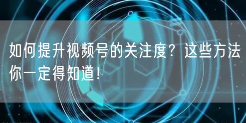提升视频号关注度需要综合运用多种方法和技巧。通过优质内容创作、社交媒体推广、互动沟通以及付费推广渠道等多种方式,你可以快速吸引粉丝并扩大影响力。当然,这需要一个持续的过程,需要你不懈的努力和耐心。希望本文介绍的方法能帮助你在视频号的道路上取得更大的成功!