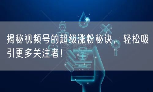 在当今社交媒体盛行的时代,视频号作为一种重要的内容传播平台,吸引了众多创作者的加入。然而,如何在这个竞争激烈的市场中脱颖而出,吸引更多关注者,成为每个创作者面临的共同挑战。本文将为你揭秘视频号的超级涨粉秘诀,助你轻松吸引更多关注者!